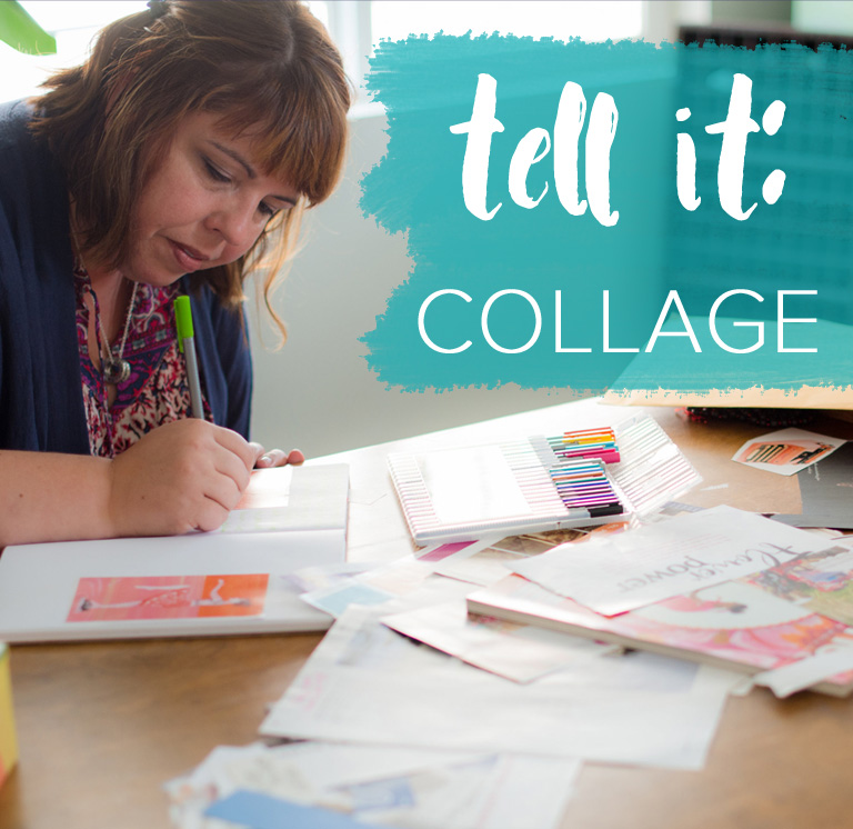Tell It: Collage is an ecourse that uses the mediums of collaging + journaling (plus a big dose of inspiration and connection) to help you tell the stories waiting inside you.